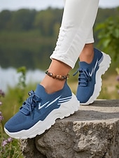 More information about Women's Green Flyknit Lace Up Sneakers – Lightweight Breathable Running Shoes for Gym, Walking and Casual Wear