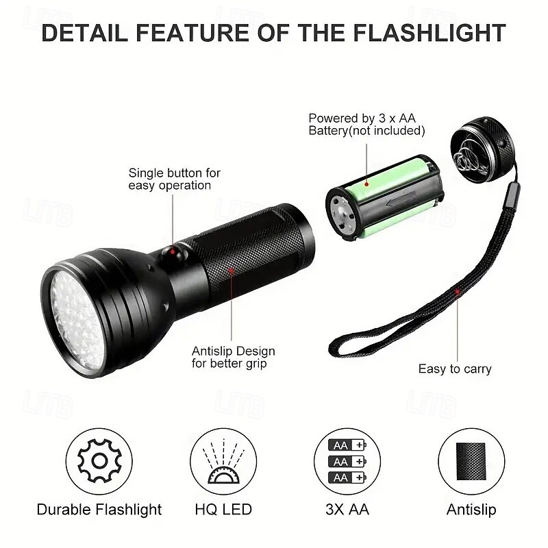 $21.99 - 51 LED UV Flashlight - 395nm Black Light for Dog Urine, Pet Stains & Bed Bug Detection (Batteries Not Included) 2025. Shop for cheap Flashlights online? Buy at lightinthebox.com on sale today!