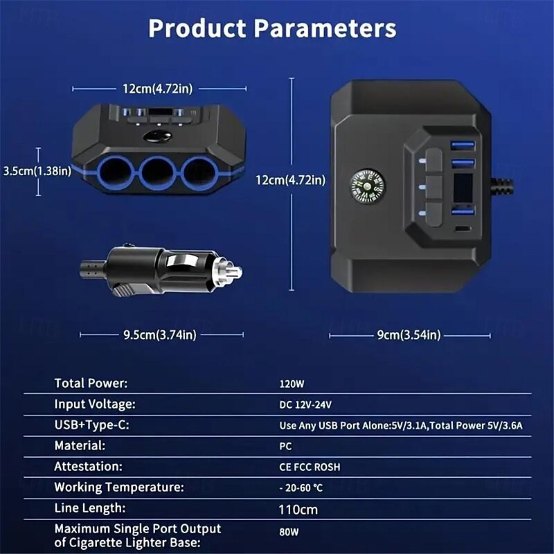 $25.99 - High-Power 120W 7-in-1 Car Charger with 3 Sockets and 4 USB Ports - Individual Switches LED Voltage Display for Efficient Multi-Device Charging 2025. Shop for cheap Wireless Chargers online? Buy at lightinthebox.com on sale today!