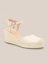 More information about Women's Beige Closed-Toe Ankle-Strap Espadrille Wedge Sandals with Rhinestone Detail - Perfect for Summer Days