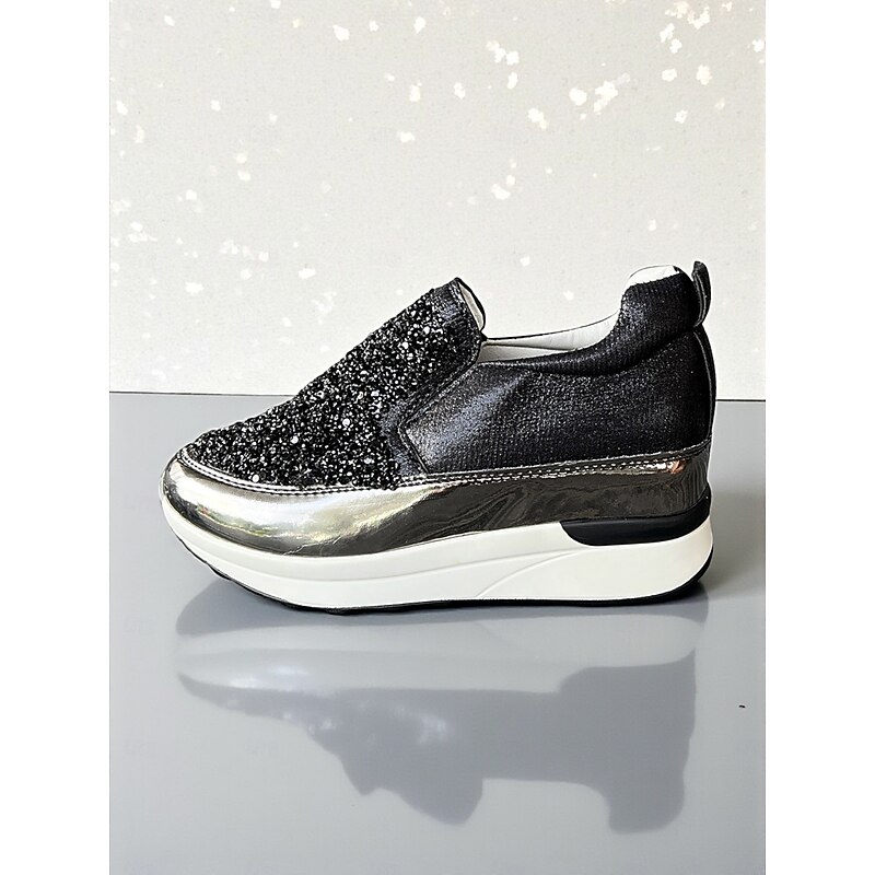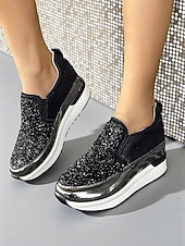 More information about Women's Black Glitter Slip-On Sneakers with Metallic Detailing - Stylish Platform Sneakers, Perfect for Nightlife Parties and Casual Outings
