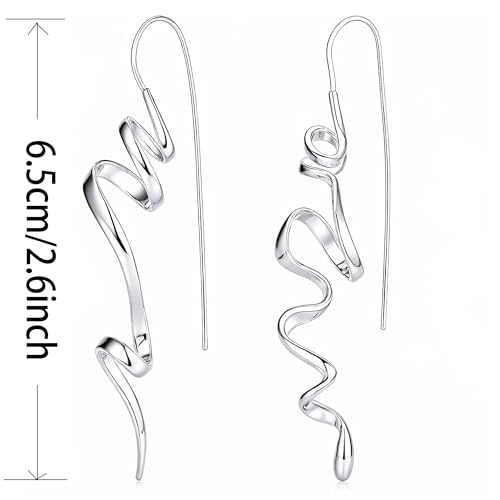 Earrings for Women Trendy Spiral Threader Earrings Hypoallergenic Silver Dangle Drop Earrings 14k Gold Unique Twist Simple Earrings Jewelry 5