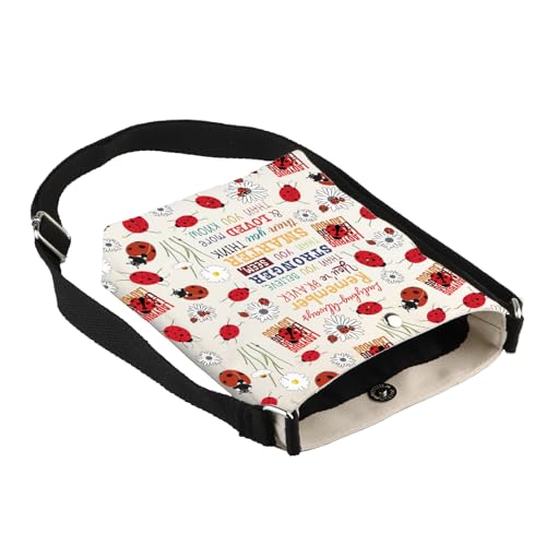 • FEATURES: Ladybug themed crossbody bag gifts for ladybug lover. Crossbody sling detachable, length of the adjustable strap is 50cm (19.68 inches) manual measurement, please allow errors. There are many ways to wear it, you can wear it in front of your waist, as a belt bag, back on your hip, put the strap on your single shoulder as a shoulder bag, slant across your chest, or cross your body as a crossbody purse.