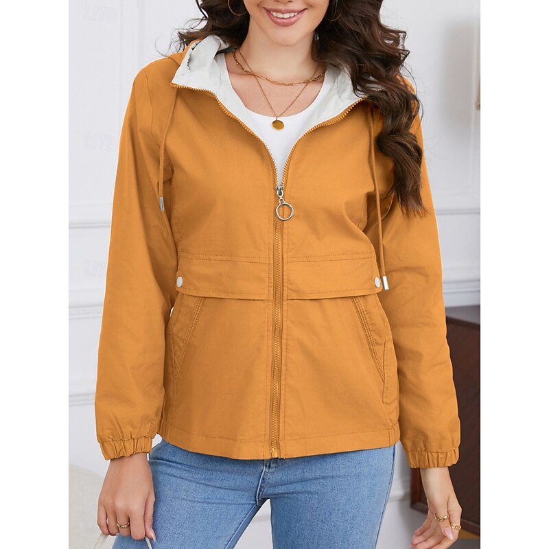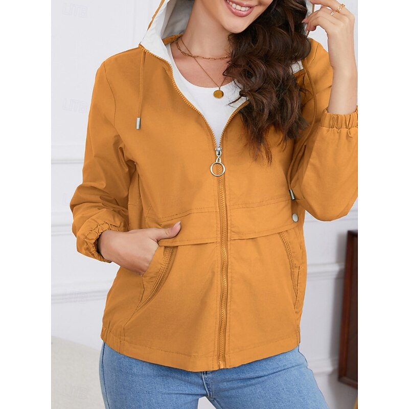 Women's Trench Coat Hoodie Jacket Comfortable Breathable Zipper Pocket Casual Plain Vacation Street Daily Wear Going out Zipper Regular Hoodie Regular Fit Long Sleeve Outerwear Black Yellow Wine 34