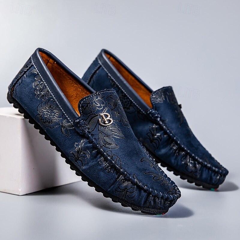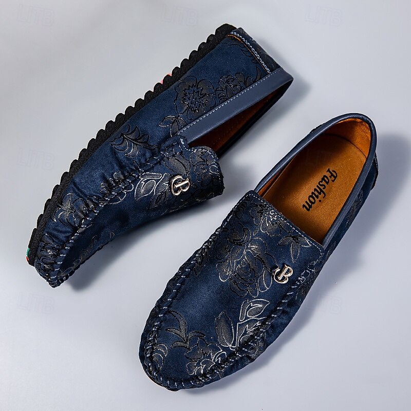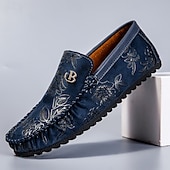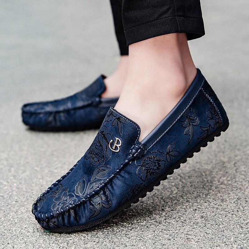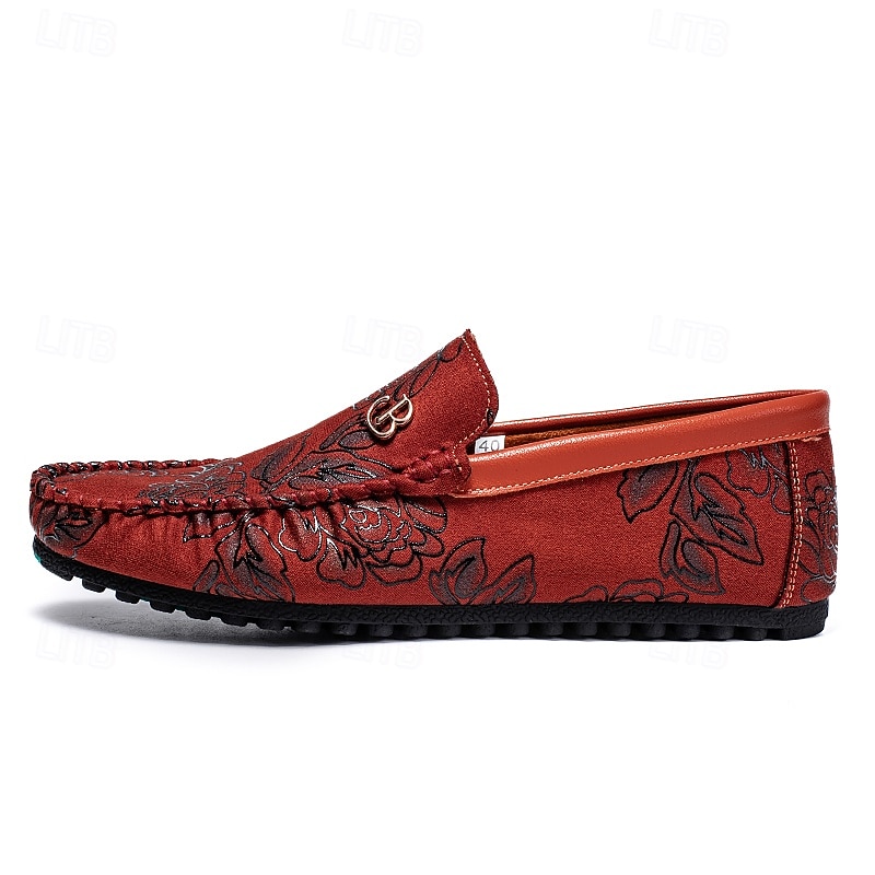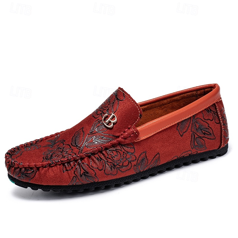 HOT ! Men's Burgundy Slip-On Loafers with Embroidered Detailing, Stylish Moccasins for Evening Wear and Resort Vacations