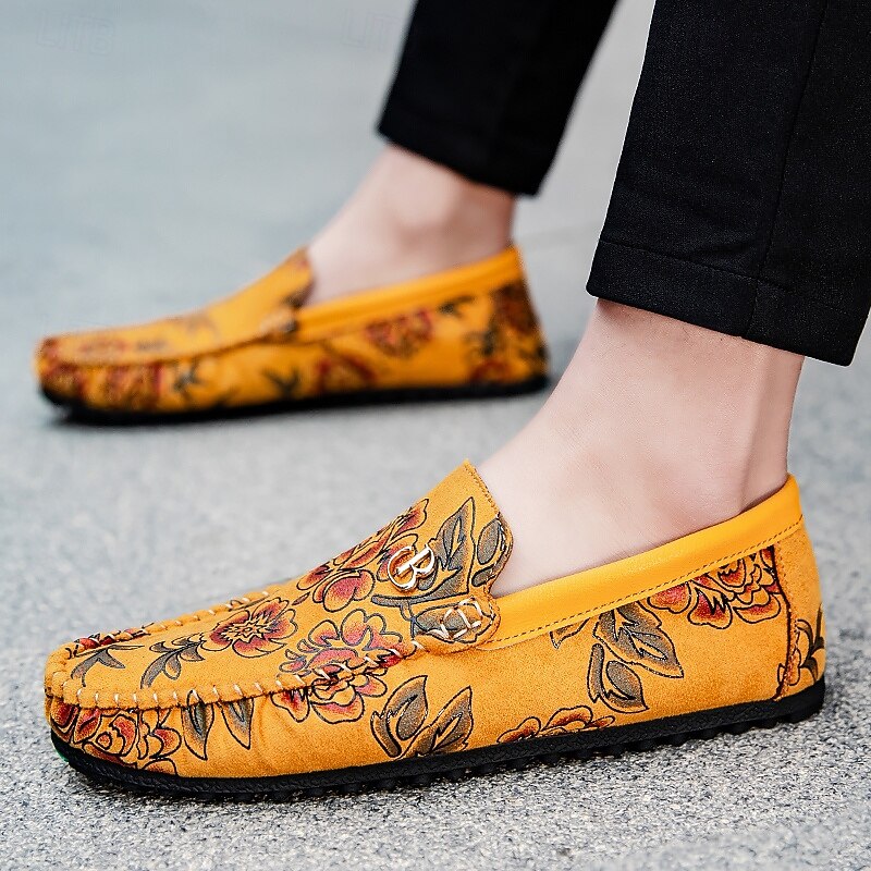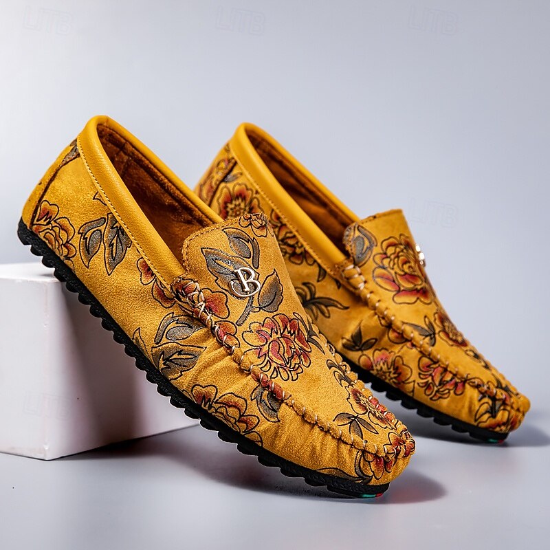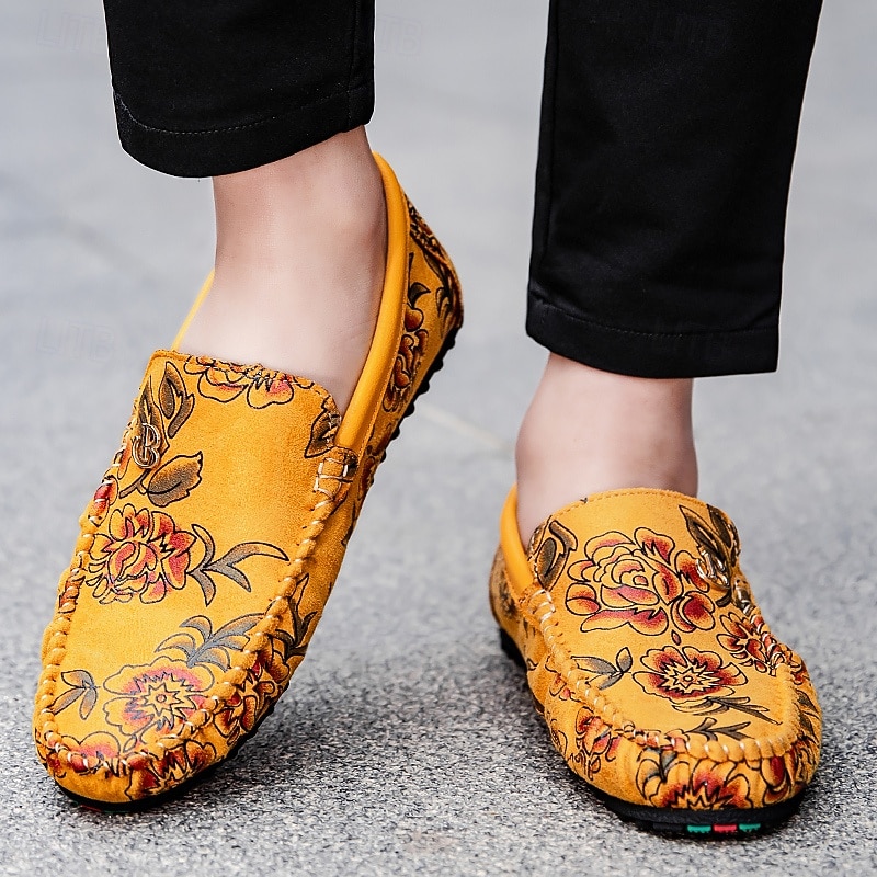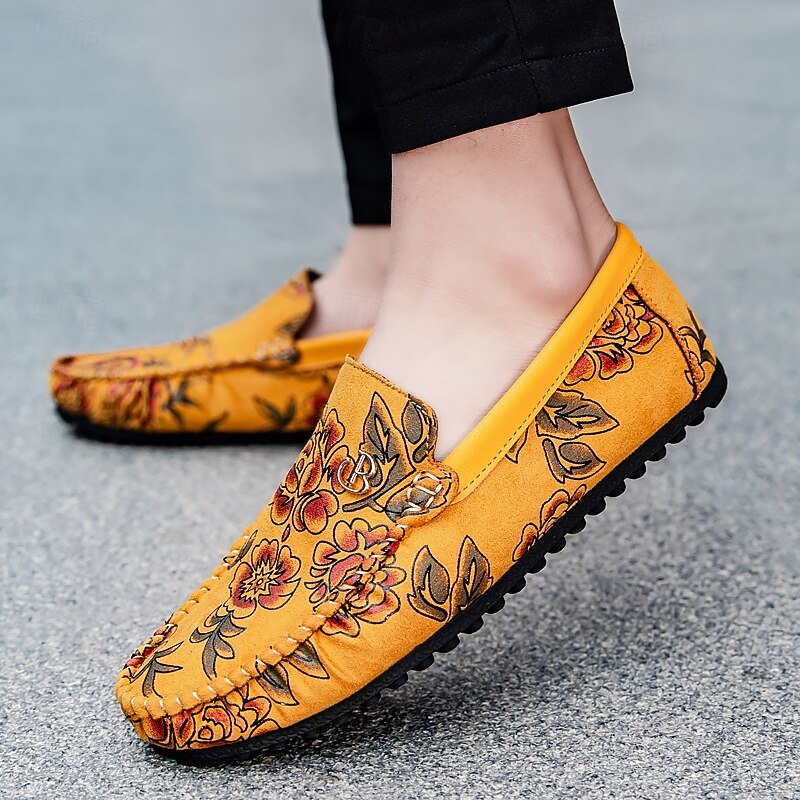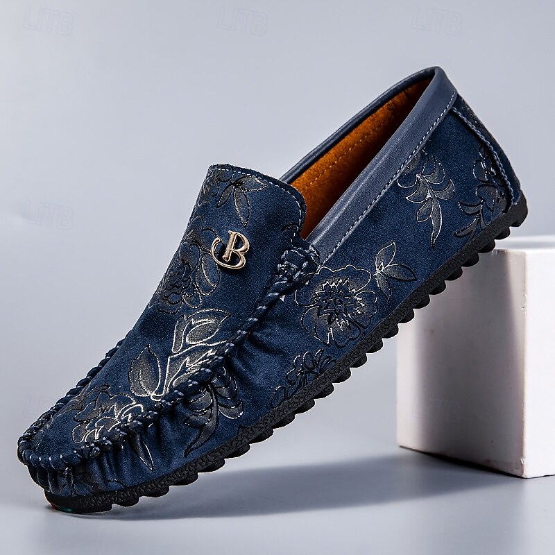 HOT ! Men's Burgundy Slip-On Loafers with Embroidered Detailing, Stylish Moccasins for Evening Wear and Resort Vacations