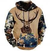 More information about Men's Deer Hoodies Fashion Daily Long Sleeve Crew Neck Holiday Going out Streetwear Brown Drawstring Fall Winter Designer