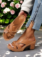 More information about Open-Toe Chunky Heels with Floral Accent, Perforated Design and Comfortable Fit for Summer Parties and Casual Outings