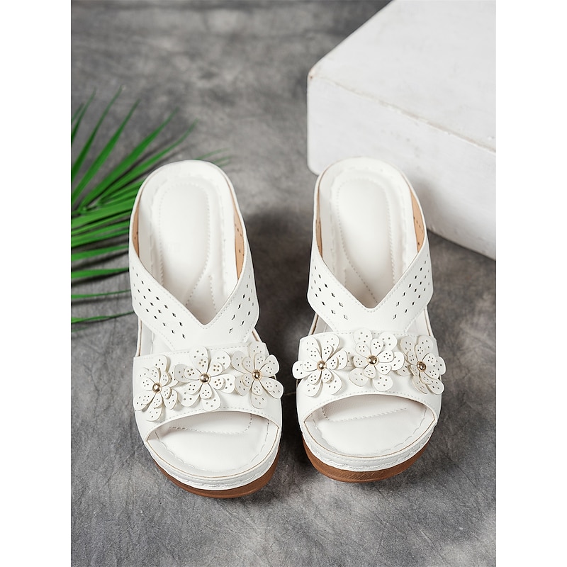 Open-Toe Chunky Heels with Floral Accent, Perforated Design and Comfortable Fit for Summer Parties and Casual Outings 4