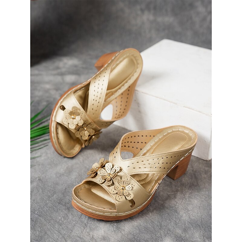 Open-Toe Chunky Heels with Floral Accent, Perforated Design and Comfortable Fit for Summer Parties and Casual Outings 1