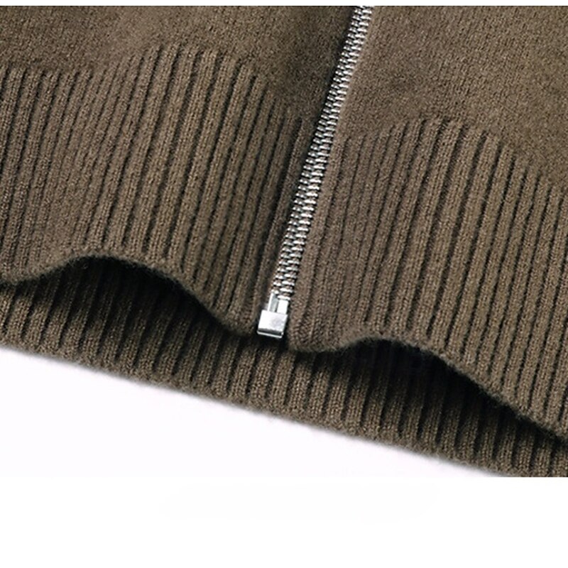Men's Cashmere Zip Sweater Knit Solid Color Turtleneck Christmas Knitwear School Christmas Clothing Apparel Fall Winter Black Brown S M L 7
