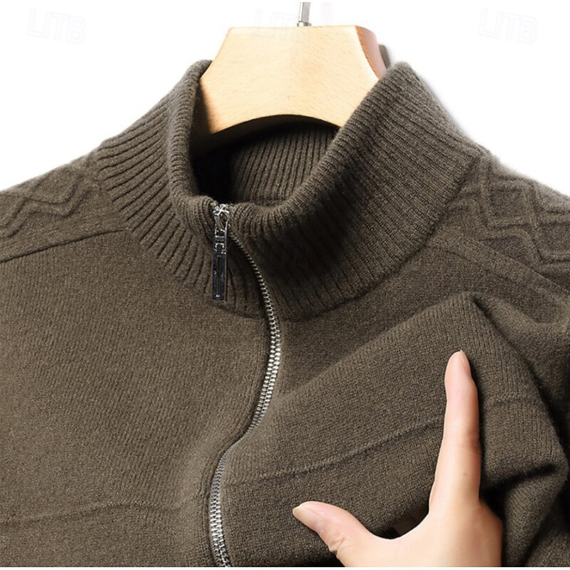 More information about Men's Cashmere Zip Sweater Knit Solid Color Turtleneck Christmas Knitwear School Christmas Clothing Apparel Fall Winter Black Brown S M L