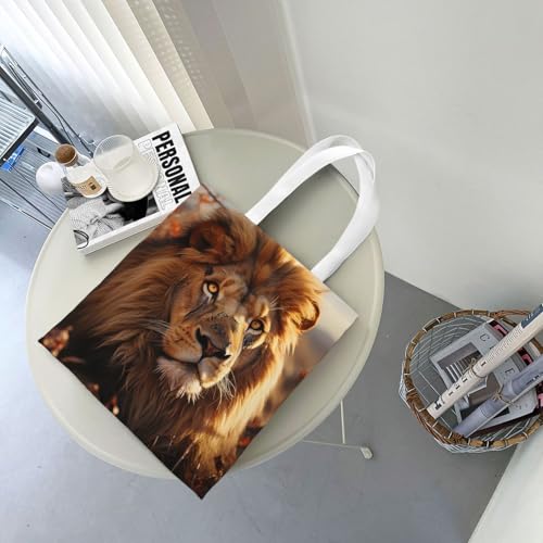 • MULTIPURPOSE - These reusable shopping totes bag can be used as grocery shopping bag, gift bag, craft bag, library bag, vacation bag, beach bag, Lion on grassland grocery shopping bag and more, also can be used as DIY art crafts for women
