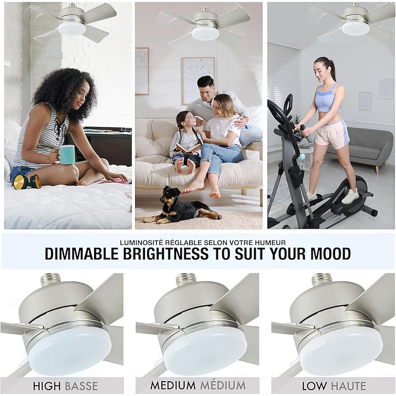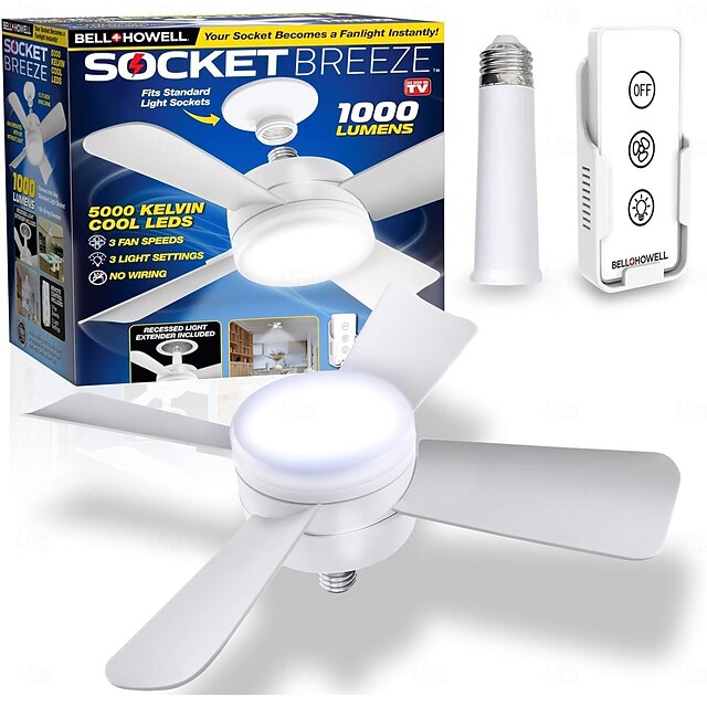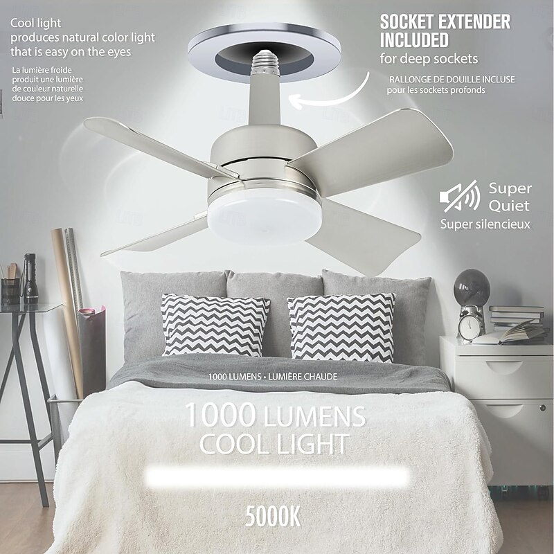 More information about Socket Breeze Modern Ceiling Fans with LED Lights 15 LED E26/E27 Screw Base Mini Light Socket Fan with Cord for Bedroom Living Room Kitchen Balcony