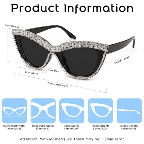 • Fashionable Diamond Cat Eye Sunglasses Design: FEISEDY Fashionable cat eye sunglasses frame diamond-shaped inlay design, unique super cute classic cat eye shape, perfectly present different facial contours, sunglasses frame with flowers shaped diamonds above and shiny small rhinestones embellished below, so that you are very dazzling in the sun shine.