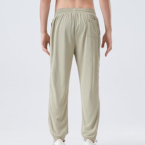 HOT ! Men's Solid Color Jogger Pants with Pockets Elastic Waist Casual Sweatpants Tapered Cuff Athletic 7/8 Length Trousers