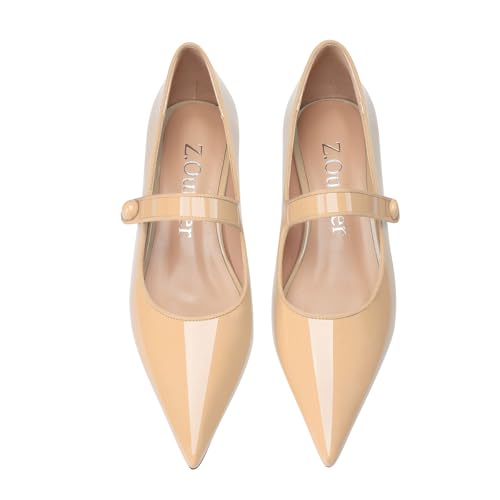 Women Vintage Mary Jane Pumps Ballet Flats Patent Leather Ankle Strap Closed Pointed Toe Slip On Comfortable Classic Dress Shoes for Casual Work Office Wedding Business Daily Walking 5
