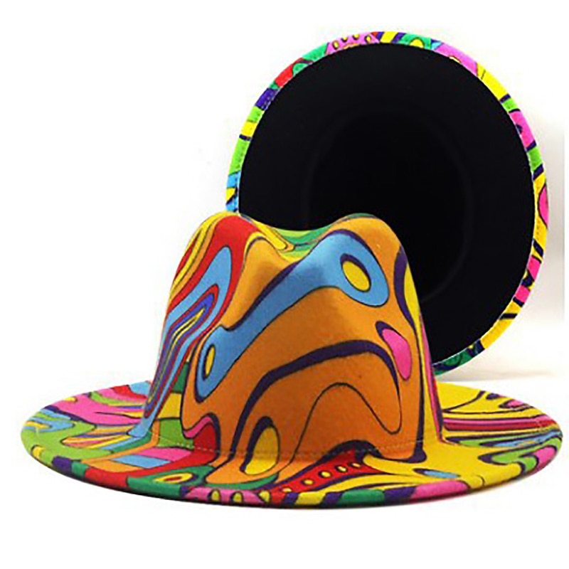 HOT ! Fashion Graffiti Fedora Sun Hat Jazz Hat British Style Top Hat For Outdoor Indoor Super Foot Bowl Sunday Party Gift Super Bowl