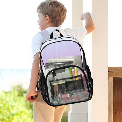 • FASHION FORWARD CLEAR DESIGN : Showcase your style with kids clear travel bags, featuring a see-through backpack enhanced by printed elements for a trendy statement look