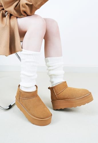 • MINI BOOTS WOMEN WARM FUR LINED -- Platform boots for women soft and warm as sheepskin. provide fluffy fuzzy comfortable feeling for your feet, perfect for women who need snow boots, fur boots, or simply warm, fuzzy boots.