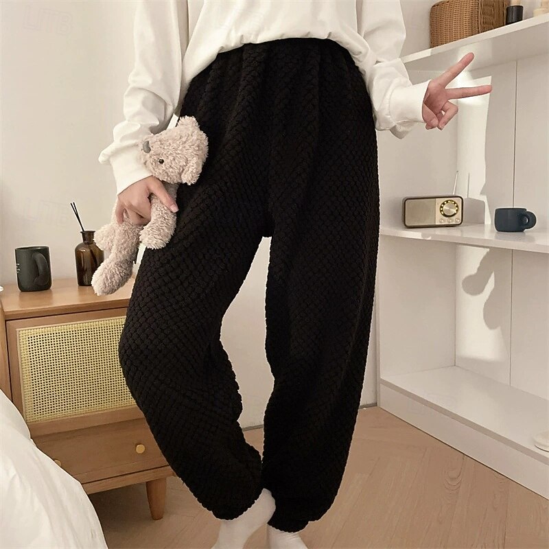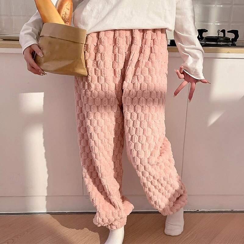 More information about Women's Corduroy Pants Slacks Straight Casual Plus velvet Full Length Natural Plain Elastic Waist Comfortable Home Casual Daily Wear Lotus Black Pink Blue Winter Regular Fit