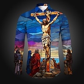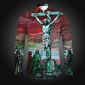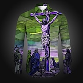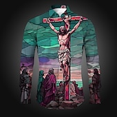 More information about Men's Jesus Shirt Button Up Shirt Long Sleeve Vintage Artistic Daily Wear Going out Spring Turndown Print Button-Down Burgundy Navy Blue Blue Dark Green Green