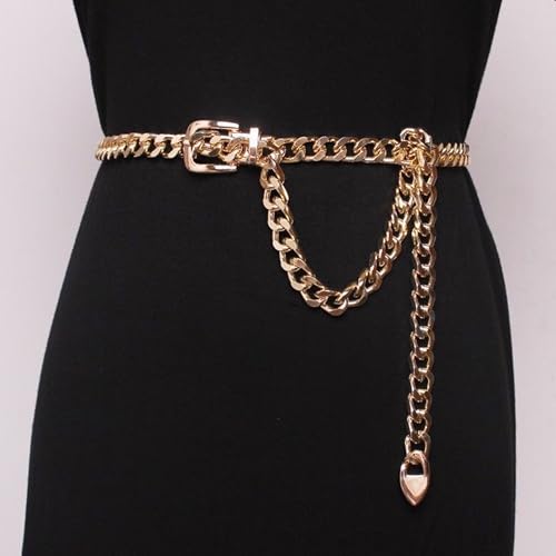 More information about IZUS Women Gold Waist Chain Belt for Dress Pants 0.5 inch Thin Ladies Square Buckle Metal Belt Adjustable fit for 25-39in