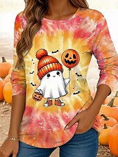 More information about Halloween Women's T shirt Ghost Long Sleeve Crew Neck Long Sleeve Tunic Graphic Vintage Casual Regular Tops Daily Print Yellow Pink Orange Spring Fall Prefall