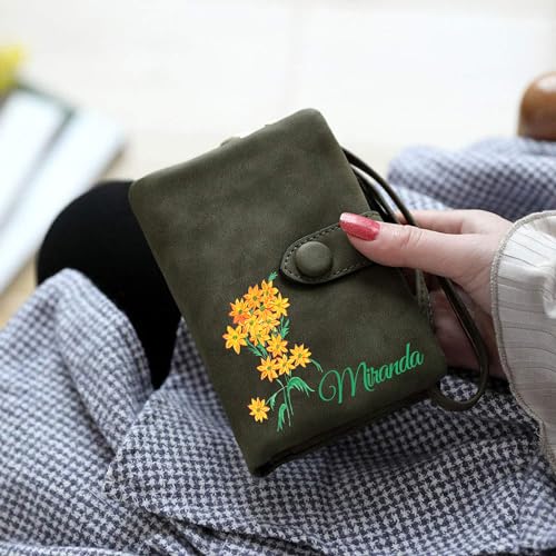 HOT ! Personalized Wallet Custom Birth Flower & Name, Small Leather Wallet Coin Purse Card Holder for Women Mom Teen Girls Valentines Day Gifts for Her, Customized Wristlet Wallets Bridesmaid Gifts