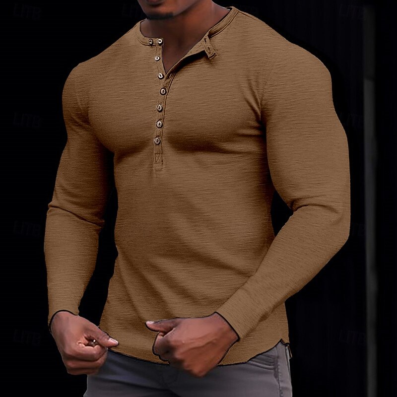 More information about 100% Cotton Men's Henley Shirt Tee Top Long Sleeve Shirt Long Sleeve Solid Color Fashion Daily Buttons Henley Outdoor Casual Summer Dark Brown Army Green Dark Grey Henley T-Shirt