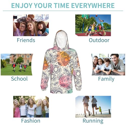 Skull and Flowers Kid Hoodies Boys Sweatshirts Girls Pullover with Pocket 5
