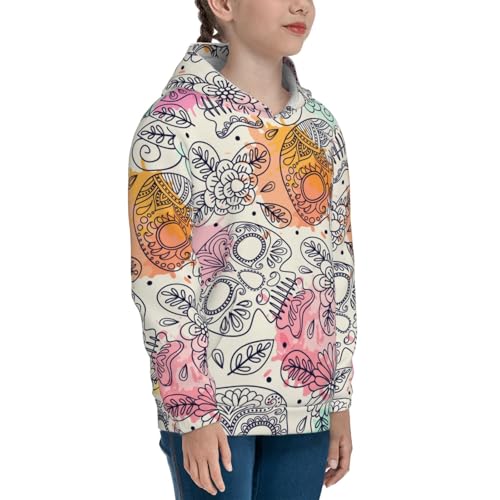 Skull and Flowers Kid Hoodies Boys Sweatshirts Girls Pullover with Pocket 7