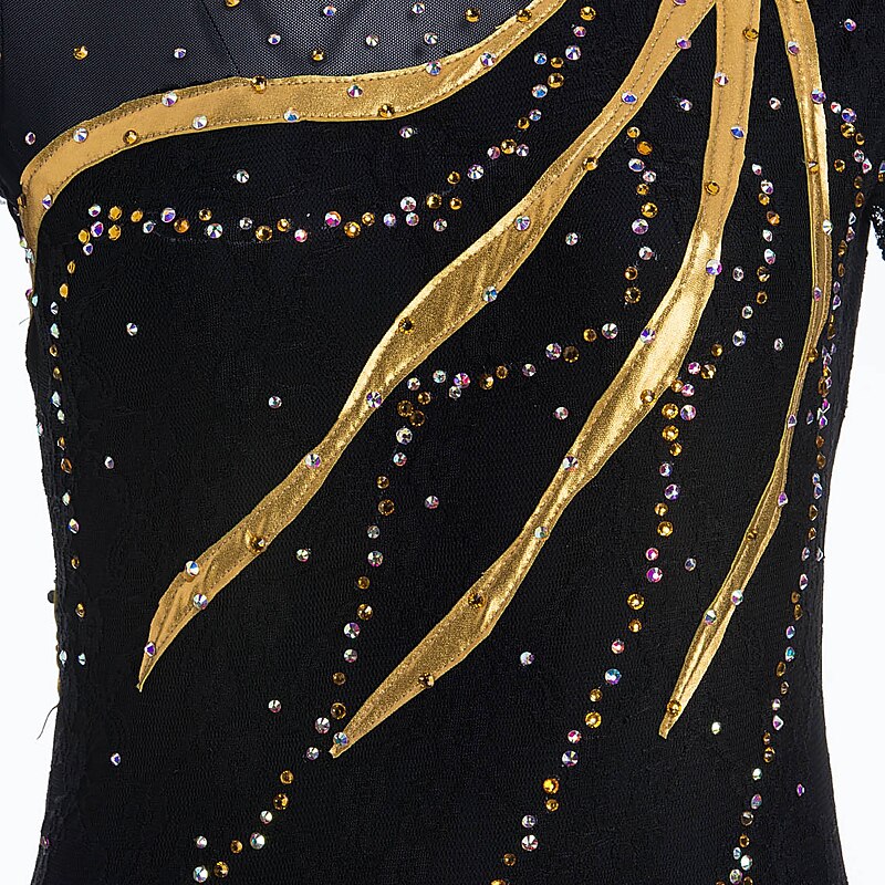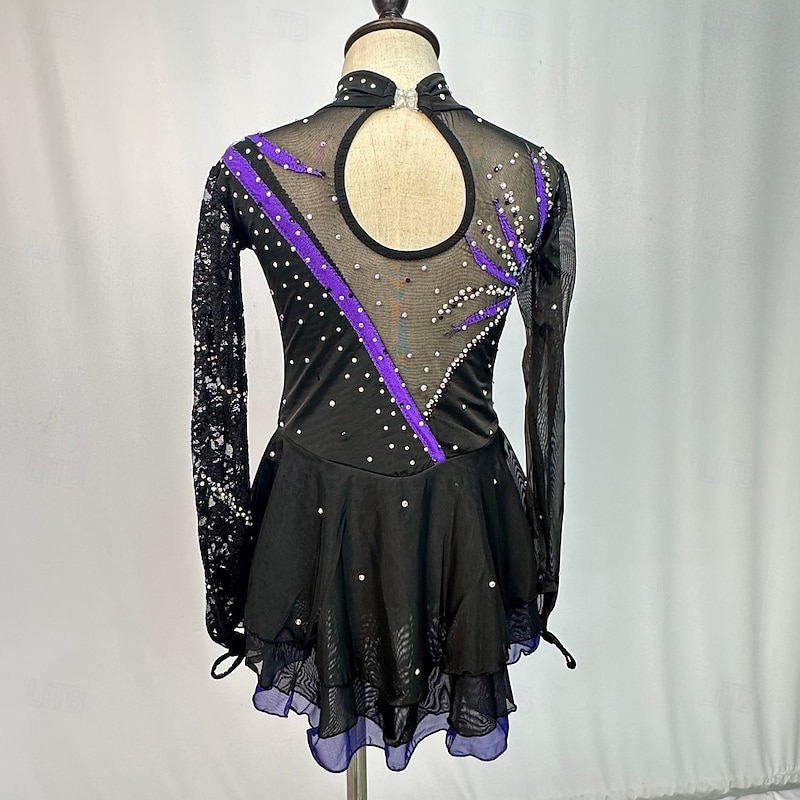 Figure Skating Dress Women's Girls' Ice Skating Dress Outfits Black Purple Sky Blue Spandex Lace Leisure Sports Competition Skating Wear Handmade Solid Colored Fashion Long Sleeve Ice Skating Figure 9