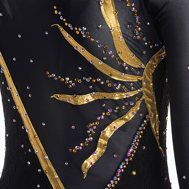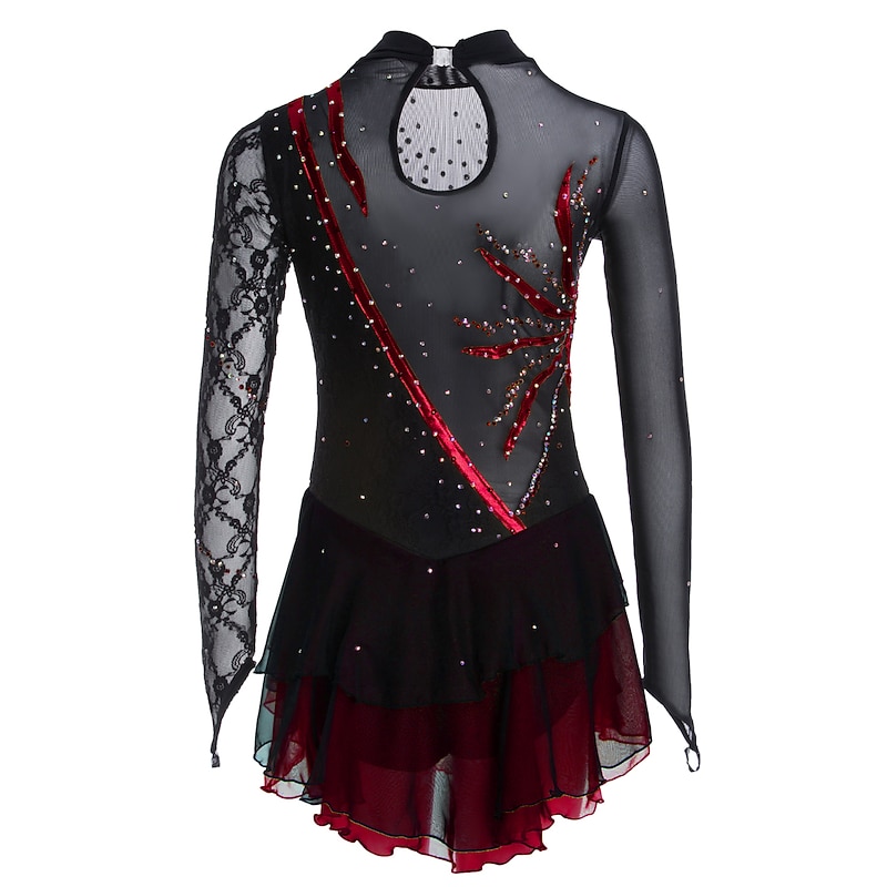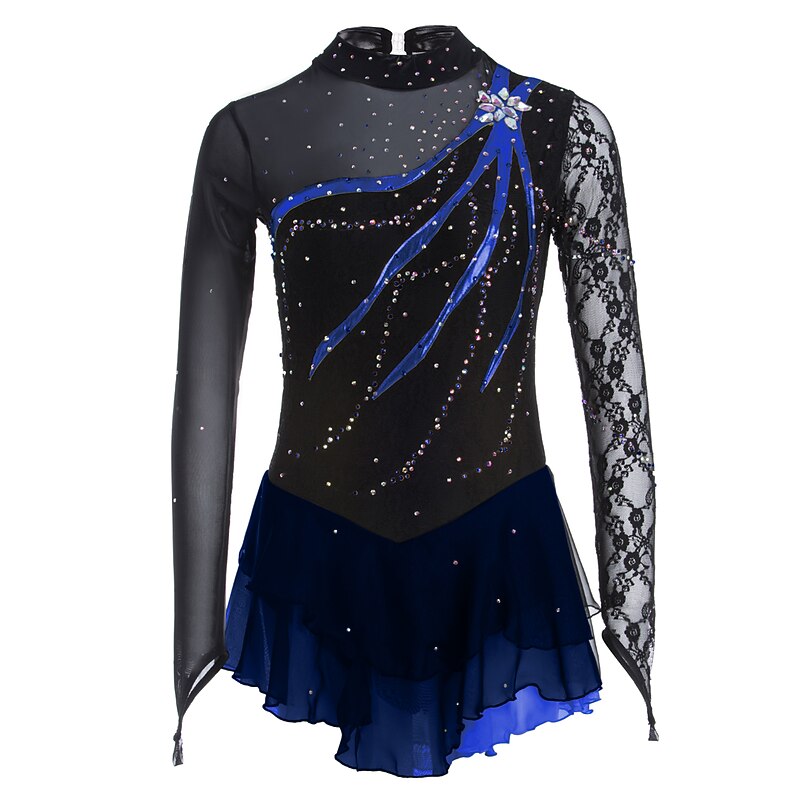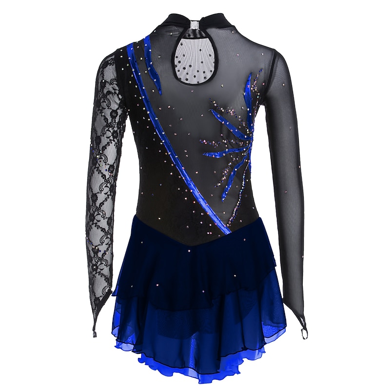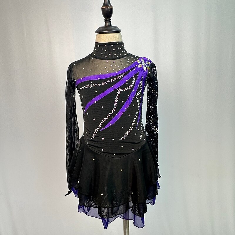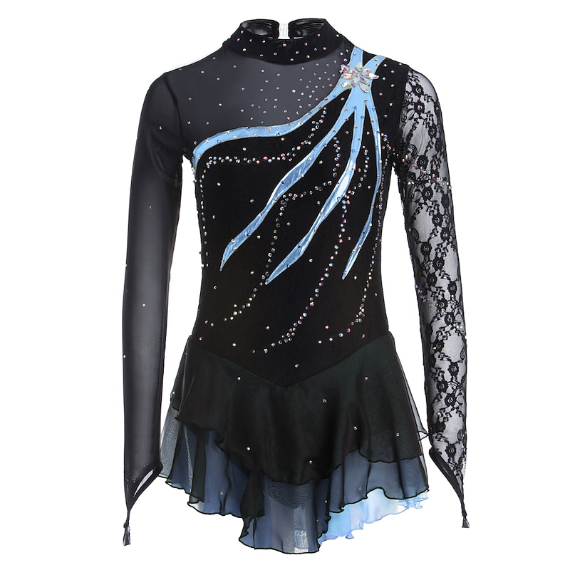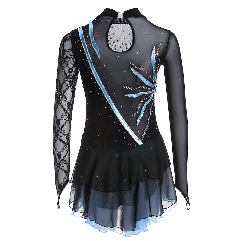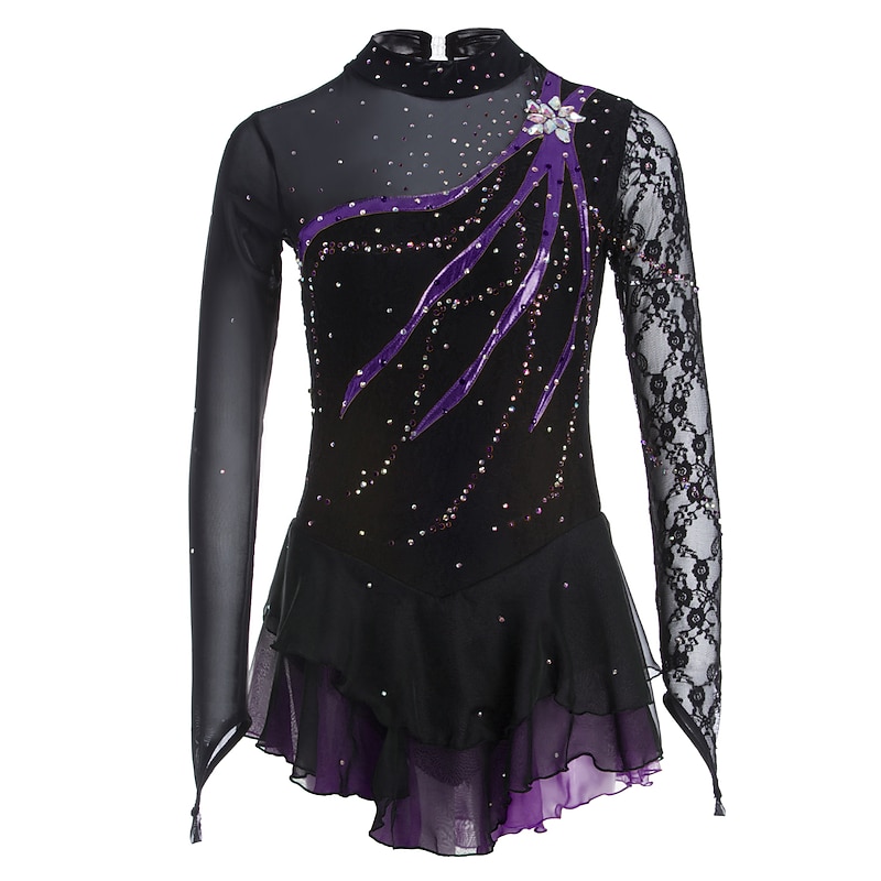 More information about Figure Skating Dress Women's Girls' Ice Skating Dress Outfits Black Purple Sky Blue Spandex Lace Leisure Sports Competition Skating Wear Handmade Solid Colored Fashion Long Sleeve Ice Skating Figure