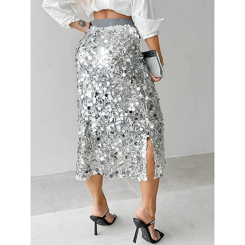 More information about Women's Skirt Bodycon Elegant Fashion Midi High Waist Skirts Plain Sequins Stretchy Party Street Silver Black Gold Spring Polyester