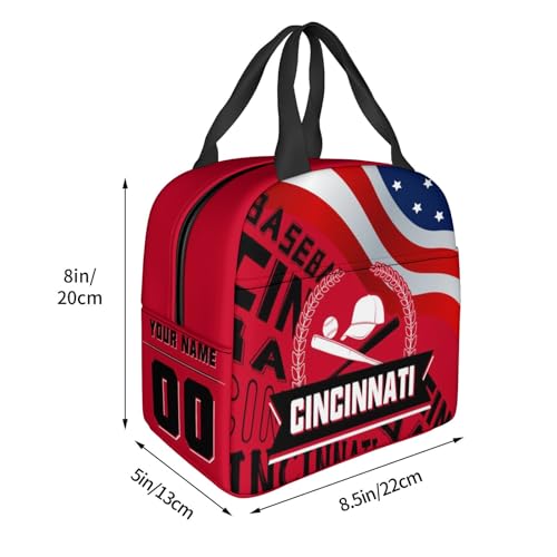HOT ! Custom Boys Girls Cincinnati Backpack Lunch Box Pencil Case with Name & Number, Large Capacity 17" School Book Bag Gifts for Kids