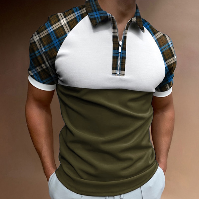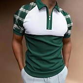 More information about Men's Golf Shirt Polo Business Casual Quarter Zip Short Sleeve Fashion Casual Plaid Color Block Zipper Summer Spring Regular Fit Blue Dark Green Green Golf Shirt