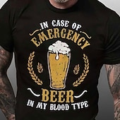 Highlights [Fabric:] Crafted from 100% cotton, this men's T-shirt offers a soft and breathable experience, making it perfect for the warmer seasons of spring and summer. The material is micro-elastic, providing a comfortable fit that moves with you. [Fit:] Designed with a regular fit, this T-shirt caters to a variety of body types. Its classic cut ensures a casual yet flattering look suitable for everyday wear. [Design Highlights:] The T-shirt features a humorous and bold letter print that reads "In Case of Emergency, Beer in My Blood Type," with an artistic illustration of a foamy beer glass and decorative barley motifs. The crew neck and short sleeves add to its classic, laid-back style, ideal for those who enjoy a touch of humor in their wardrobe. [Occasions:] Perfect for casual outings, sports events, or street activities, especially for beer enthusiasts looking to showcase a playful fashion sense. This tee adds a fun twist to any casual ensemble, suitable for outdoor and relaxed gatherings. [Size Range:] Available in a range of sizes from S to XXL, this T-shirt is designed to fit adults comfortably, ensuring a broad appeal across various demographics.