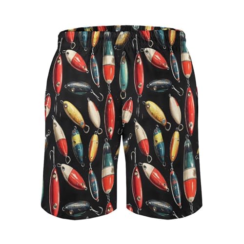 HOT ! Mens Swim Trunks, Colored Fish Hooks Print Swim Shorts with Mesh Lining Swimwear Bathing Suits Quick Dry