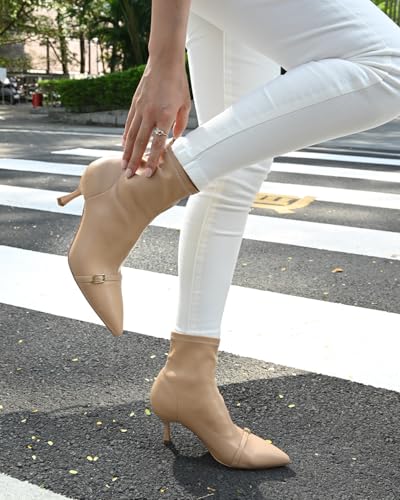 Kitten Heel Ankle Boots for Women Dressy Pointed Toe Chelsea Boots for Fall Low Heel Stretchy Upper Slip On Comfortable Women Booties for Winter 4