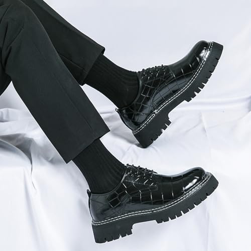 Men's Print Lace Up Platform Increase Oxfords,Fashion PU Leather Lug Sole Loafers Classic Round Toe Comfort Slip On Dress Shoes 6