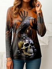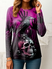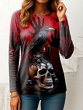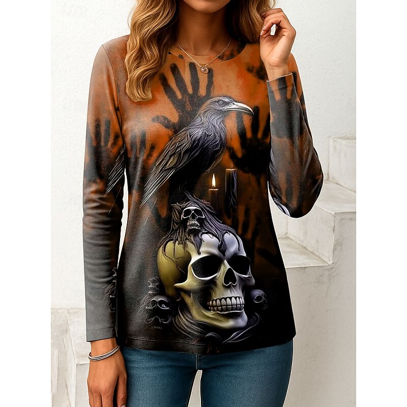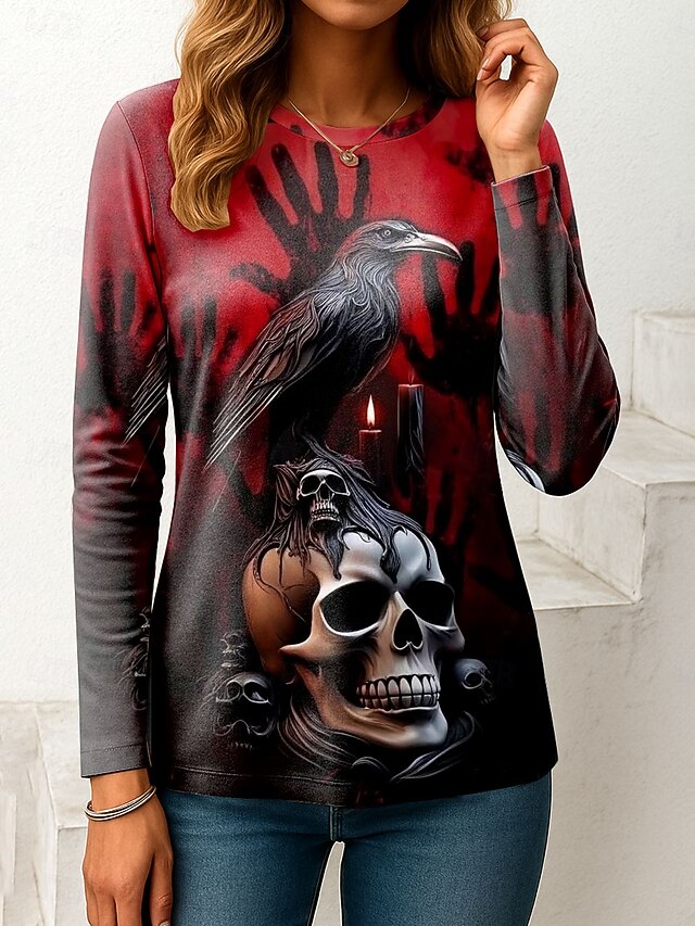 More information about Halloween Women's T Shirt Skulls Graphic Vintage Fashion Stylish Long Sleeve Crew Neck Regular Tops Daily Weekend Print Pink Red Blue Orange Green Spring Fall Winter
