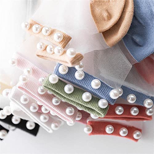 10 Pairs Crystal Tulle Pearl Summer Socks,Pearl Sheer Socks,Women Sheer Lace Elastic Ultra Thin Silk Stockings Short 5