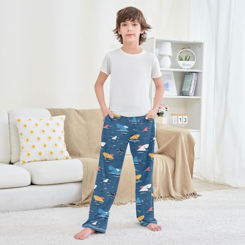 Shark Fin Print Boys Long Pants Soft Trousers Elastic Waist Kids Lounge Bottoms with Pockets S-XL 5