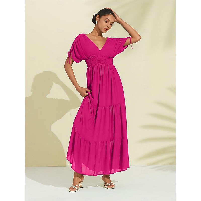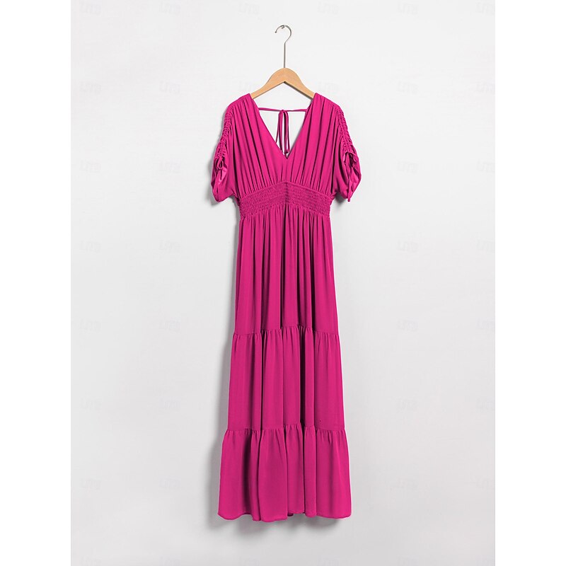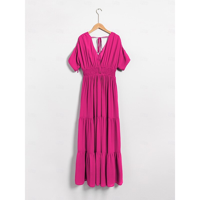 Women's Green Dress Hem Maxi Rose Red Short Sleeve Solid / Plain Color Tie Back Summer V Neck Dresses Vacation S M L 7