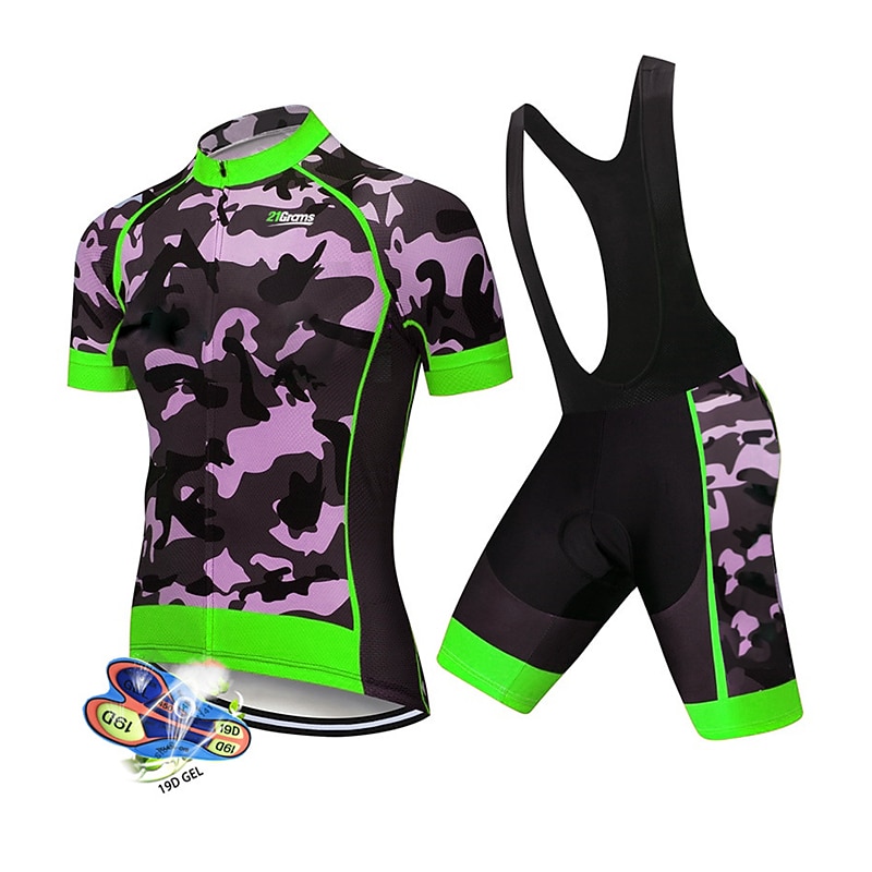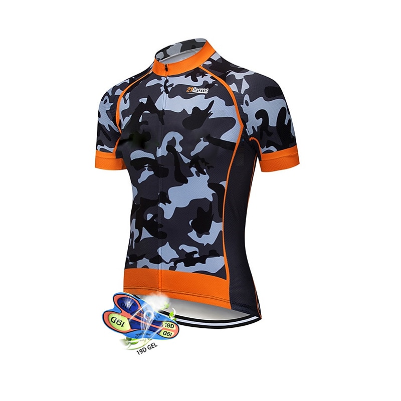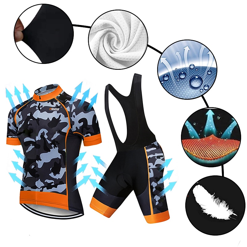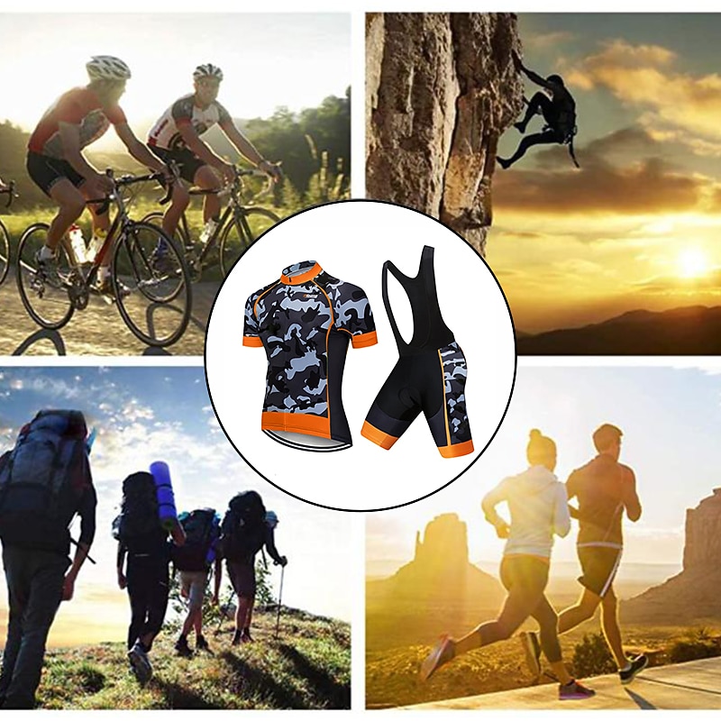 More information about Men's Cycling Jersey with Bib Shorts Short Sleeve Mountain Bike MTB Road Bike Cycling Black White Red Patchwork Camo / Camouflage Bike Clothing Suit UV Resistant 3D Pad Breathable Quick Dry Back