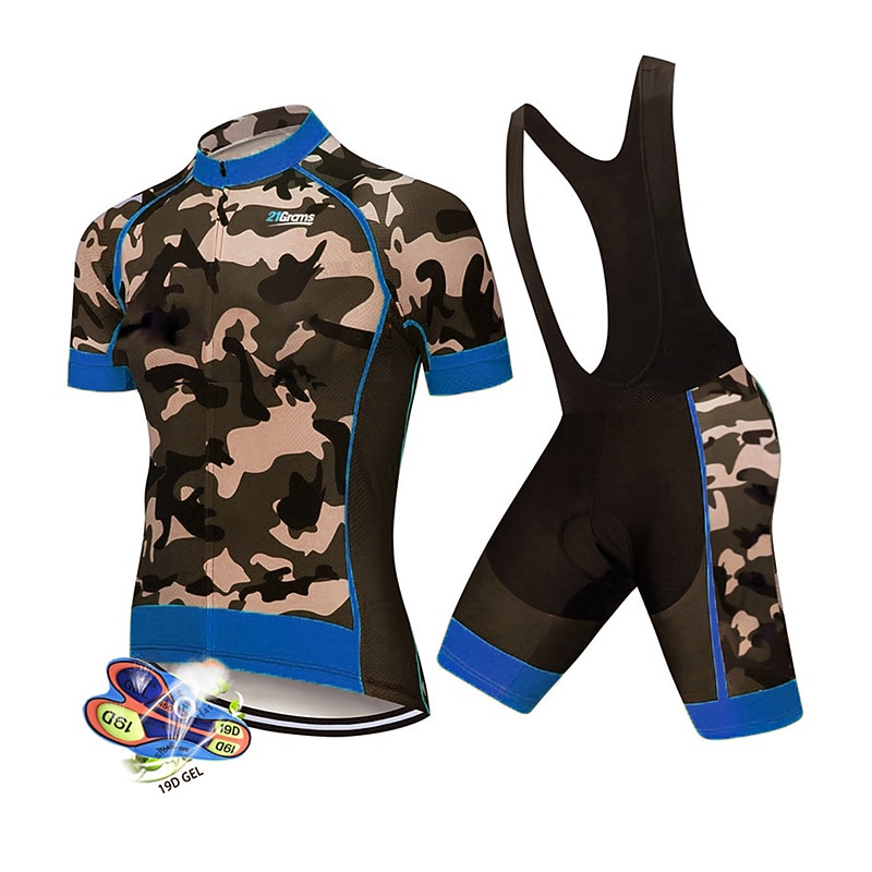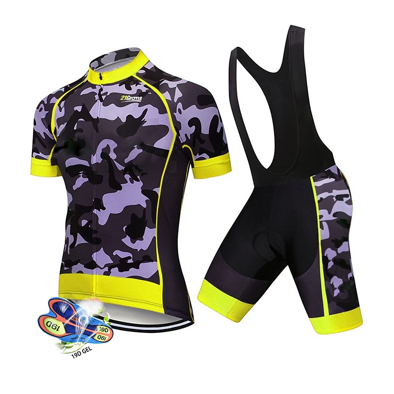 Men's Cycling Jersey with Bib Shorts Short Sleeve Mountain Bike MTB Road Bike Cycling Black White Red Patchwork Camo / Camouflage Bike Clothing Suit UV Resistant 3D Pad Breathable Quick Dry Back 21
