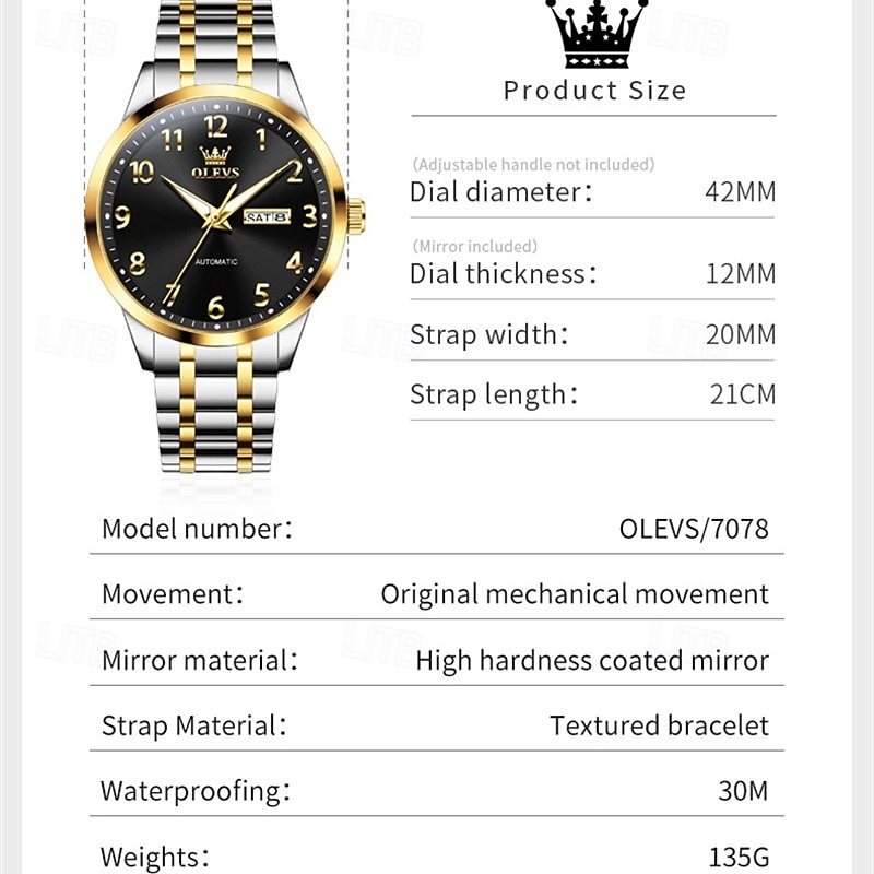 More information about The New Olevs Stainless Steel Men'S Business Watch With Luminous Calendar And Day Display Waterproof Multi-Functional Automatic Mechanical Watch Casual And Simple Digital Versatile Men'S Wristwatch