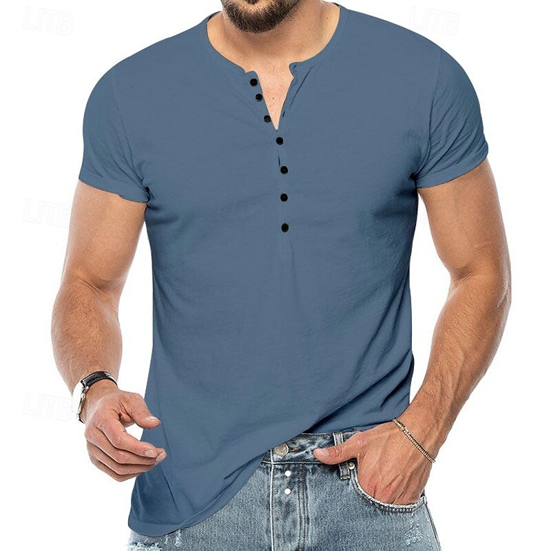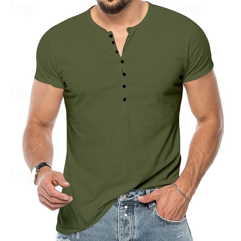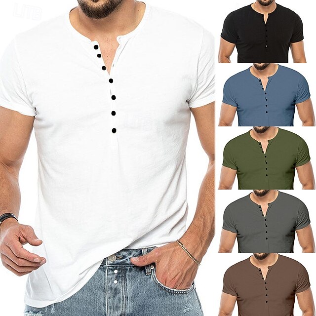 More information about Men's T Shirt Henley Shirt Henley Top Short Sleeve Solid Color Classical Button Up Henley Outdoor Casual Athleisure Spring Fall Spring & Fall Dark Brown Black White Henley T-Shirt