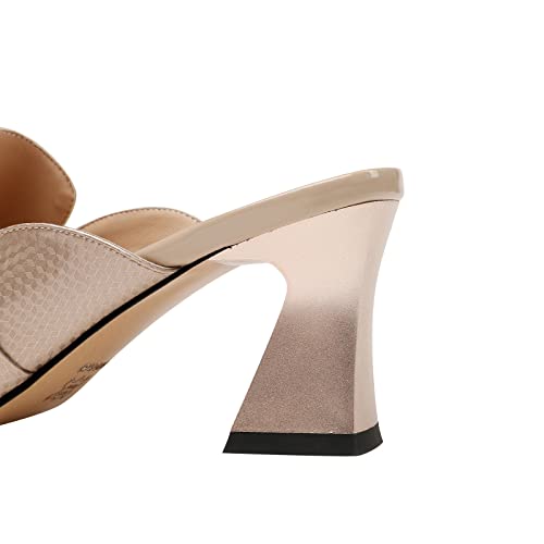 TinaCus Handmade Women's Genuine Leather Pointy Toe Spool Heel Mule Pumps with Metal Square Pattern